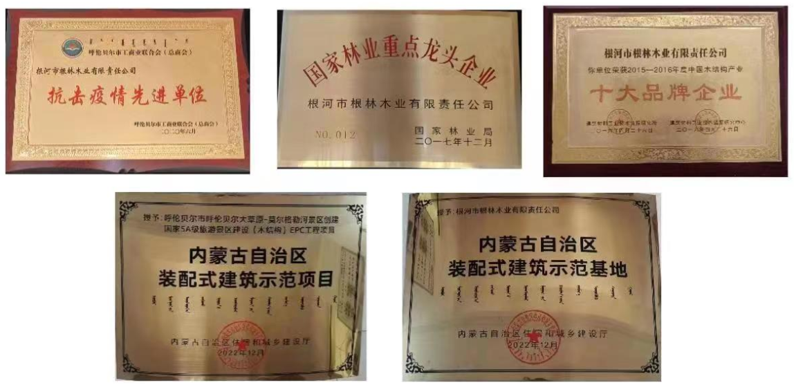 公司被評為(wèi)國(guó)家林業(yè)重點龍頭企業(yè),并榮獲自(zì)治區"守合同 重信用"獎、呼倫貝爾市(shì)第三屆“市(shì)長(cháng)質量”獎,2020年(nián)獲得"抗擊疫情先進單位"稱号,2022年(nián)公司被自(zì)治區住建廳評定為(wèi)木(mù)結構裝配式建築生(shēng)産示範基地,公司承建的莫爾格勒河5A景區建設項目被評定為(wèi)自(zì)治區裝配式(木(mù)結構)建築示範項目。